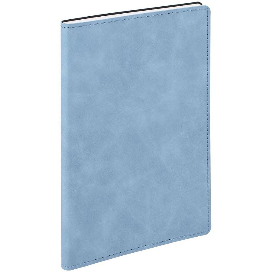Ежедневник в клетку, с гибкой обложкой, выполнен из материала Nubuck Touch, голубой JJ, дополнен ляссе светло-голубого цвета.