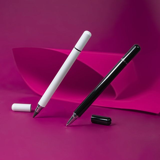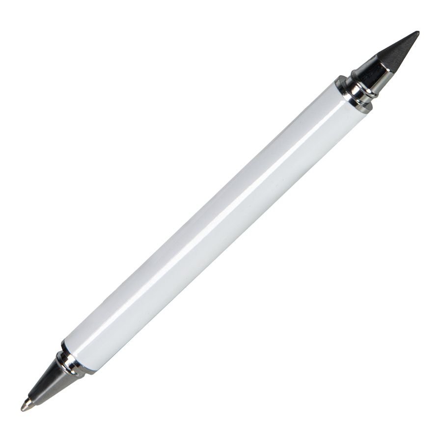Функциональная модель 2 в 1. С одной стороны - это ручка, а с другой - вечный карандаш. Идеальный выбор рациональных людей, как для промо мероприятия, так и в качестве бизнес подарка. Так как гораздо выгоднее приобрести один пишущий инструмент, в котором будет и ручка, и вечный карандаш, нежели покупать их по отдельности.