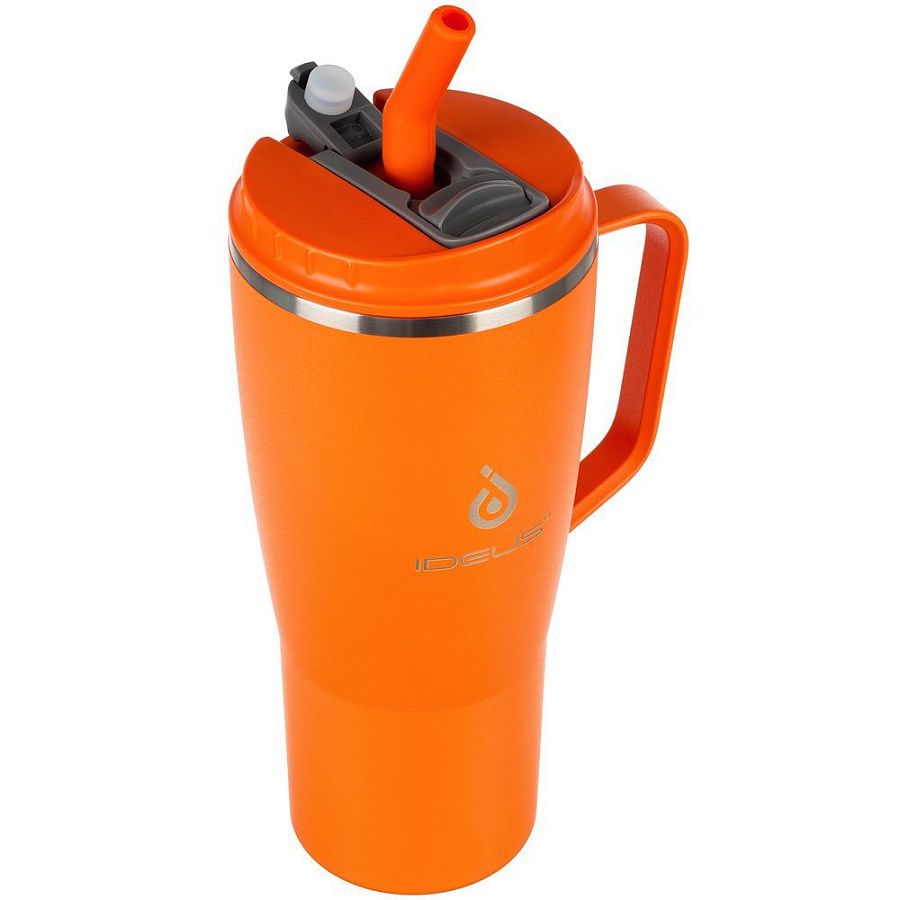 - 2 крышки в комплекте: одна на 100% герметичная с механизмом блокировки отверстия для питья, вторая — с отверстием для трубочки