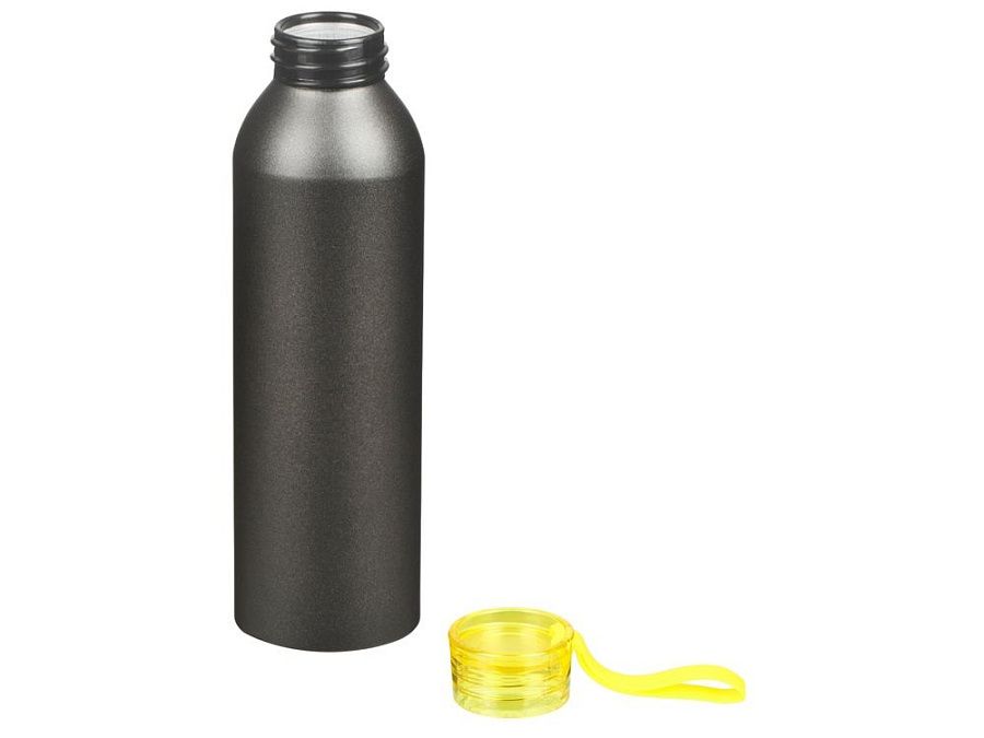 Бутылка для воды Joli выполнена из алюминия, что обеспечивает ей, при довольно солидном объеме (650 мл), сравнительно малый вес. Матовый корпус угольно-черного цвета создает интересный контраст с прозрачной крышкой яркого сочного оттенка, дополненной силиконовой петелькой в тон. Крышка плотно прилегает при закручивании, что обеспечивает Joli герметичность, а текстура покрытия корпуса не дает руке скользить при захвате.