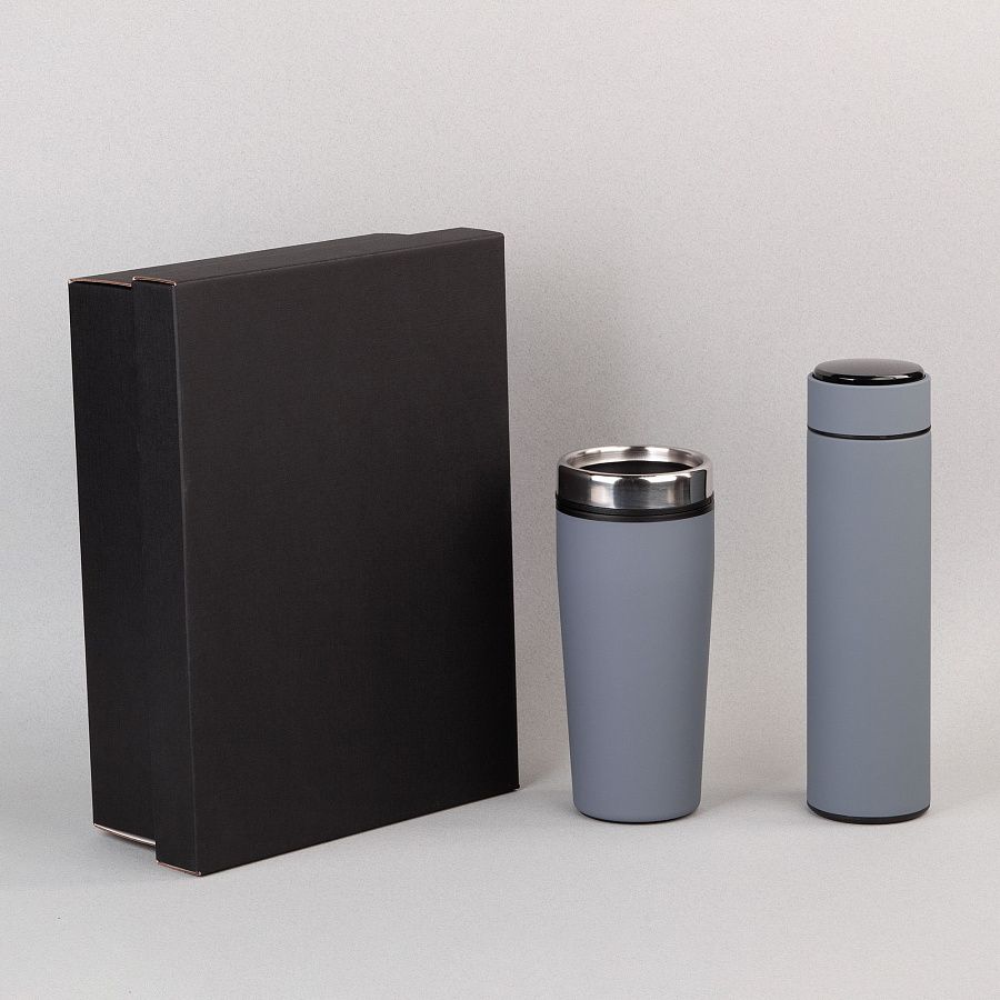 - Подарочные наборы с термокружкой серого цвета