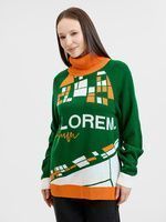 Джемпер с вывязанным логотипом и индивидуальным рисунком в фирменной цветовой гамме.