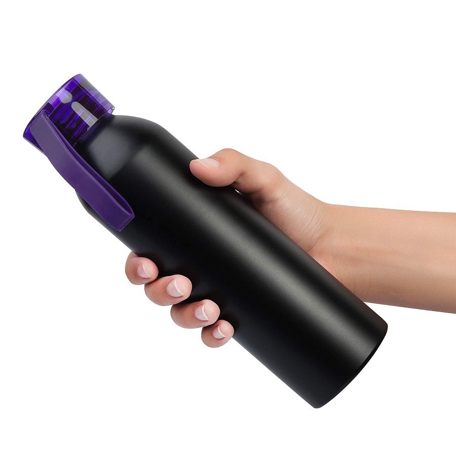Алюминиевая матовая бутылка с пластиковой крышкой.