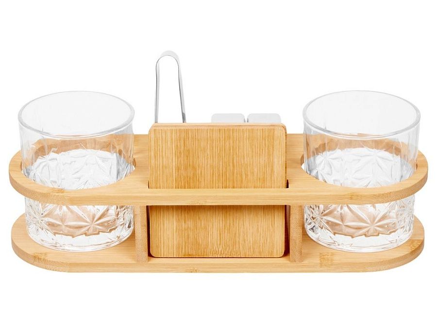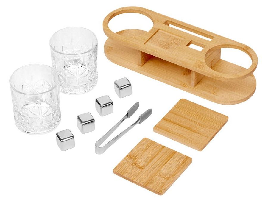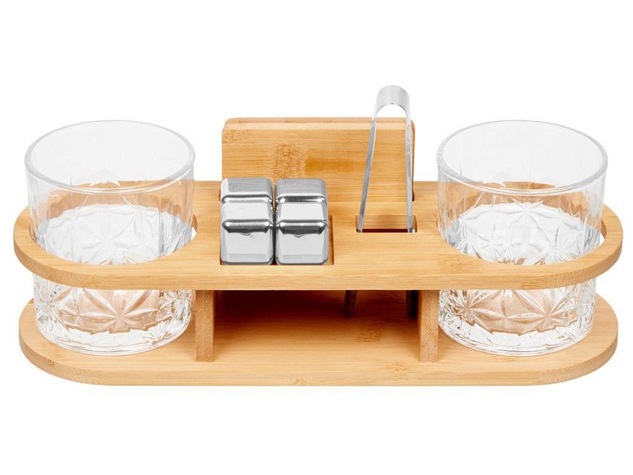 бокал для виски- 2 шт, щипцы, стальные камни- 4 шт, бамбуковый костер- 2шт