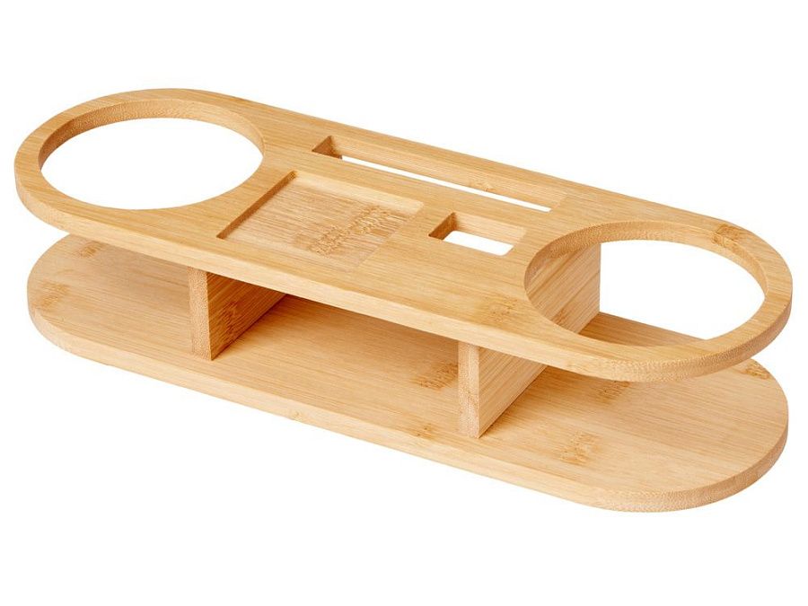 Подставка (1 шт.),на которой компактно размещены все предметы набора. Выполнена из бамбука.