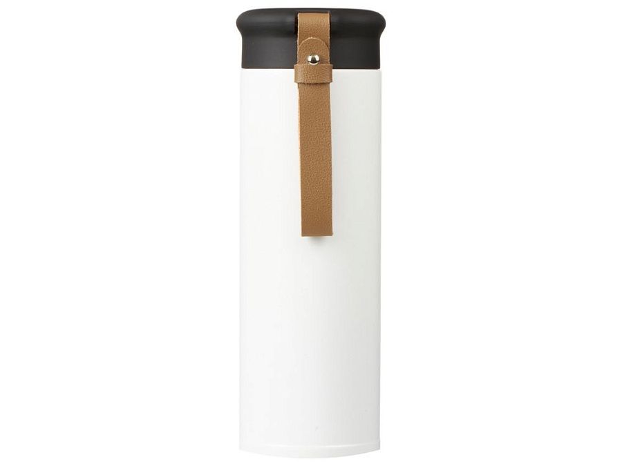 Термос герметично завинчивается на крышку, оснащенную съемным ремешком из качественной ПУ кожи. Крышка имеет прорезиненное покрытие, что создает интересное сочетание текстур в рамках одной модели. Корпус имеет элегантную рельефную поверхность с антискользящим эффектом.