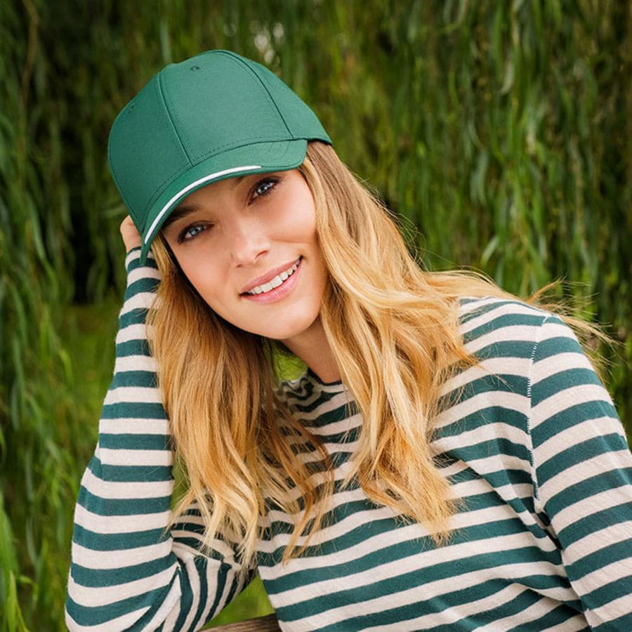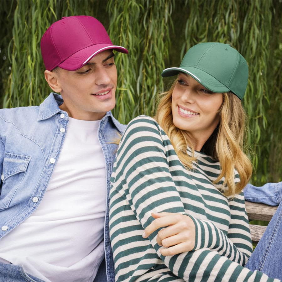 Плотная жаккардовая бейсболка ESTORIL-S с декоративным кантом по центру козырька.