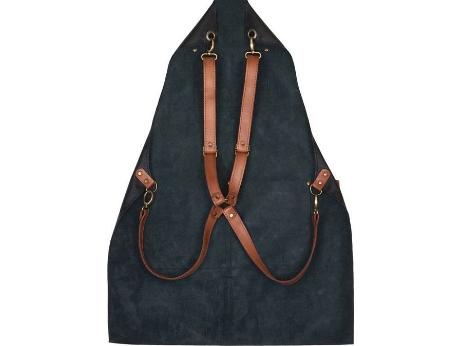 - Стильные акценты: Ремни светлого бука не только удобно фиксируют фартук, но и добавляют контраста черному цвету, делая его настоящим модным заявлением.