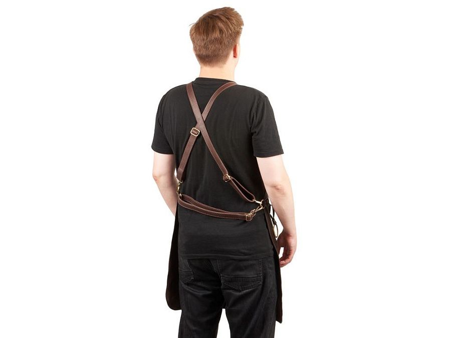 Погрузитесь в мир стиля и практичности с нашим фартуком из натуральной кожи КРС. Темно-коричневый цвет фартука в сочетании с коричневыми ремнями создает ощущение роскоши и тепла, делая его незаменимым для каждого, кто ценит качество и элегантность.
