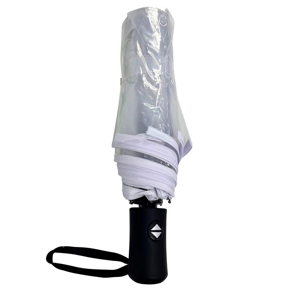 Полностью автоматический зонт Transparent – воплощение надежности и долговечности. Ветрозащитная функция реализована при помощи спиц из стекловолокна. Материал купола – полиэтилен. Зонт упакован в чехол.