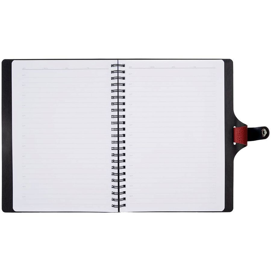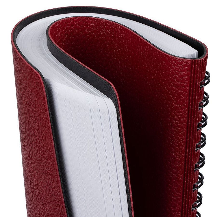 Ежедневник с гибкой обложкой, выполнен из материалов La Fite, красный РР и Waltz черный АА.