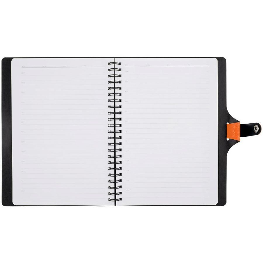 Ежедневник с гибкой обложкой, выполнен из материалов La Fite, оранжевый ОО и Waltz черный АА.
