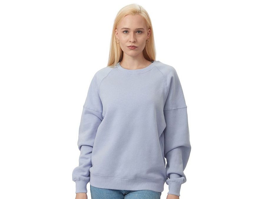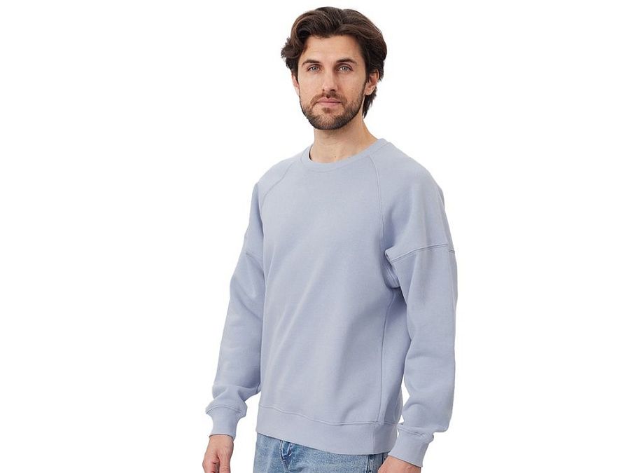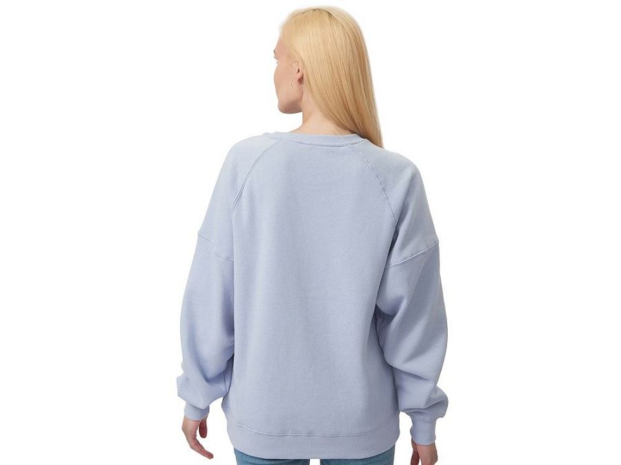 Главная особенность этого свитшота оверсайз — необычный рукав из двух частей: верхней — реглан до середины предплечья — и нижней, которая заканчивается резинкой. Благодаря такому необычному крою свитшот сидит комфортно по фигуре.