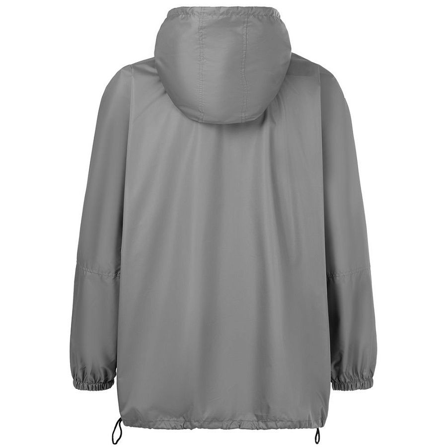 Дождевик-анорак с капюшоном и карманом на молнии спереди. Выполнен из ткани дюспо с матовой поверхностью — легкой, мягкой на ощупь, но устойчивой к повреждениям. Она не шелестит и практически не мнется. Благодаря пропитке дюспо обладает отличными водоотталкивающими и ветрозащитными свойствами.