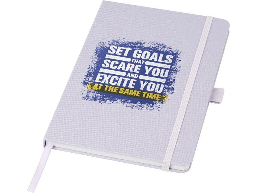 Блокнот формата А5 с обложкой из переработанного ПЭТ. Содержит 80 листов в линию плотностью 70 г/м², изготовленных из переработанной бумаги, с петлей для ручки и лентой-закладкой. Может быть дополнен шариковой ручкой Honua 107757 из переработанного ПЭТ. Переработанный PET пластик.