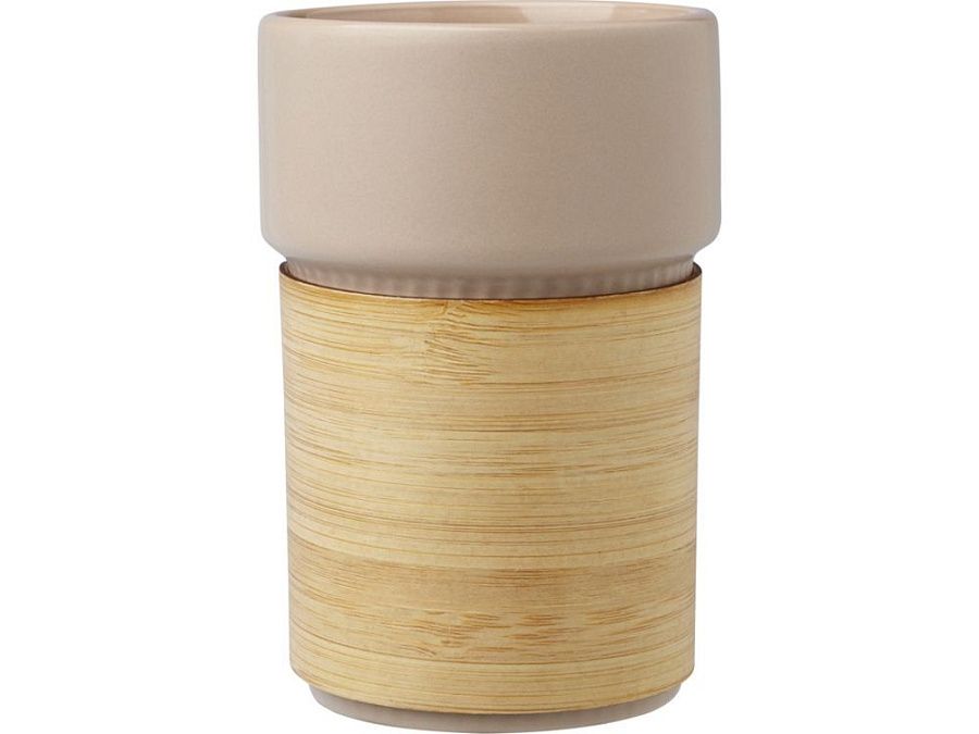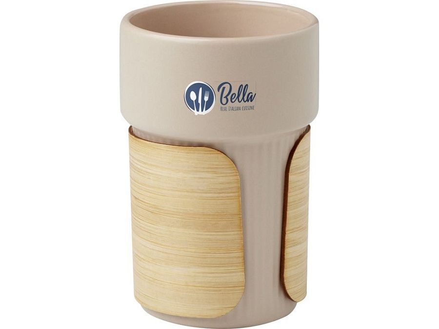 Стильный керамический стакан Fika поставляется со съемным бамбуковым чехлом, который идеально подходит для питья горячих напитков. Используемый бамбук поступает из устойчивых, экологически чистых и социально ответственных источников. Объем: 340 мл. Поставляется в коробке из переработанного картона. 94% Stoneware.