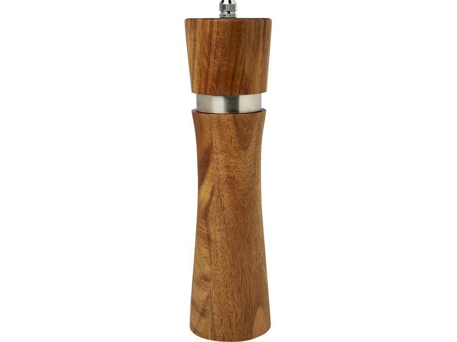 Мельница для соли и перца из древесины акации. Плавный поворотный механизм и корпус эргономичной формы обеспечивают комфортное перемалывание. FSC certified acacia wood.