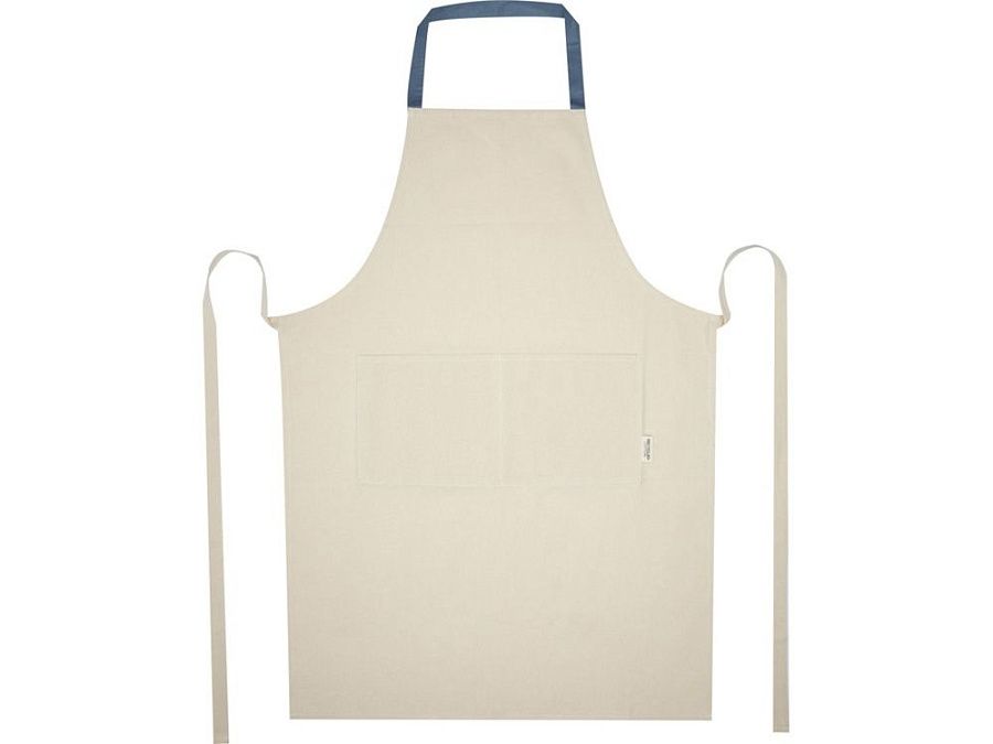 Фартук Nia изготовлен из 100% сертифицированного GRS переработанного хлопка плотностью 200 г/м². Этот фартук из натурального хлопка с контрастной петлей на шее защитит вашу одежду во время приготовления пищи. Фартук Nia с двумя соседними карманами общим размером 45 x 20 см и завязками длиной 1 метр обеспечивает обеспечивает практичность и стиль на вашей кухни. GRS certified recycled cotton, 210 g/m2.