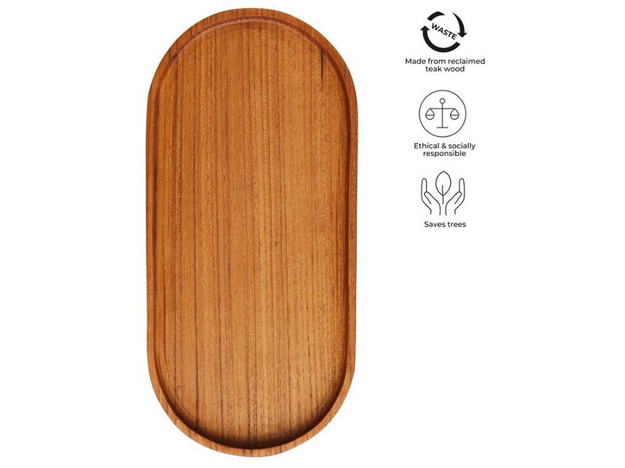 Поднос из корня тикового дерева, на котором можно подавать закуски, сладости, кофе или чай. Каждый предмет имеет свой естественный и неповторимый внешний вид. Можно использовать с продуктами питания. Размер: 24 x 12 x 1,5 cm. Recycled wood.