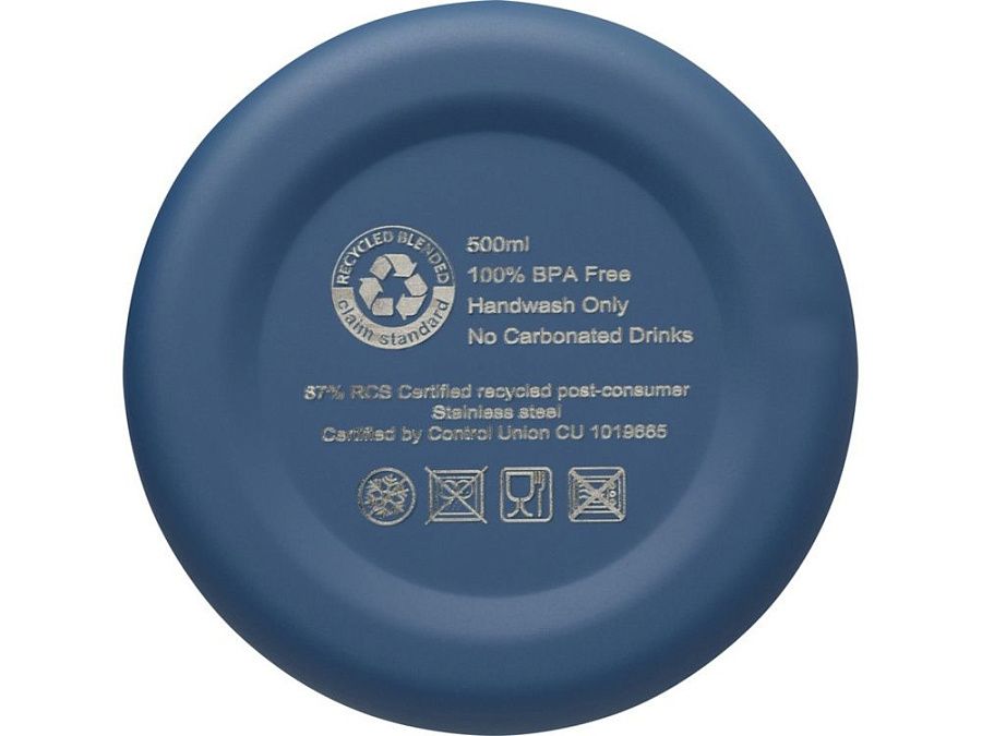 Бутылка из нержавеющей стали, сертифицированная RCS, с медной вакуумной изоляцией и лаконичным дизайном. Изолированная конструкция из нержавеющей стали предотвращает образование конденсата внутри бутылки, а модное матовое порошковое покрытие делает бутылку особенно прочной. Не содержит БФА, протестирована и одобрена в соответствии с немецким законодательством о безопасности пищевых продуктов (LFGB). Проверена на содержание фталатов и одобрена для использования в соответствии с правилами REACH. Объем 500 мл. Рекомендуется мыть вручную. Поставляется в подарочной коробке из переработанного картона. Recycled stainless steel.