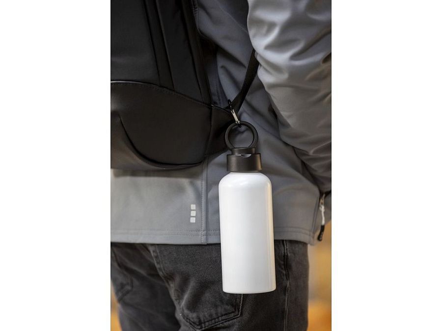 Бутылка для воды из переработанного алюминия, сертифицированного согласно RCS, с элегантным дизайном. Имеет крышку из переработанного пластика с отдельной петлей для переноски. Легкая и удобная для переноски. Объем: 600 мл. Recycled Aluminium, Recycled PP Plastic.