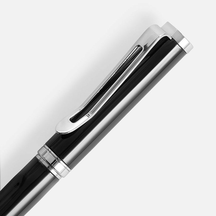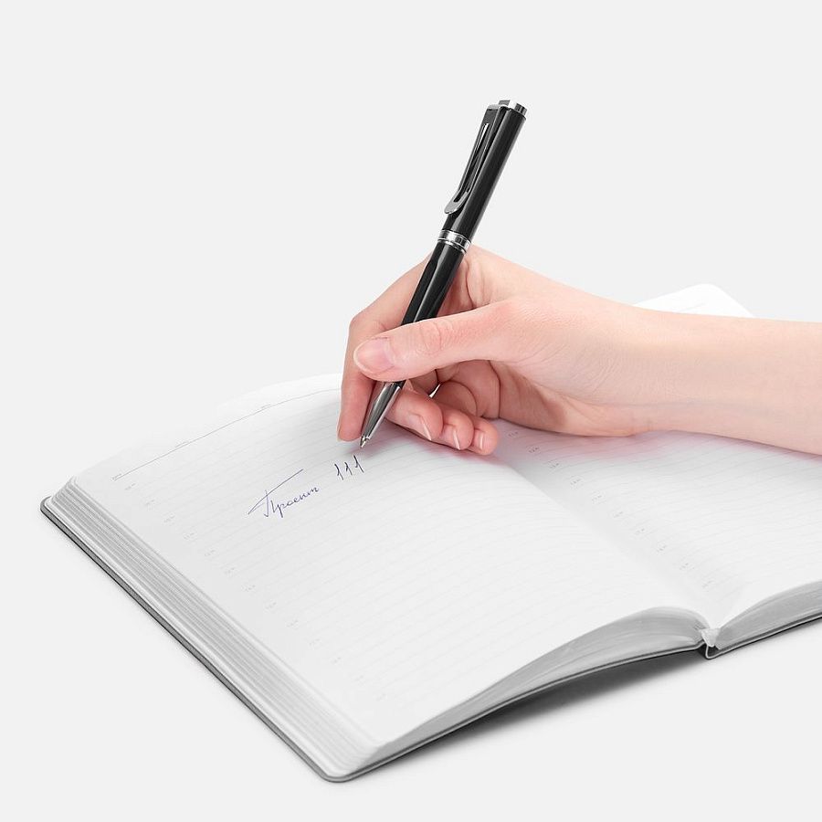 Шариковая ручка эргономичной формы в лакированном корпусе.