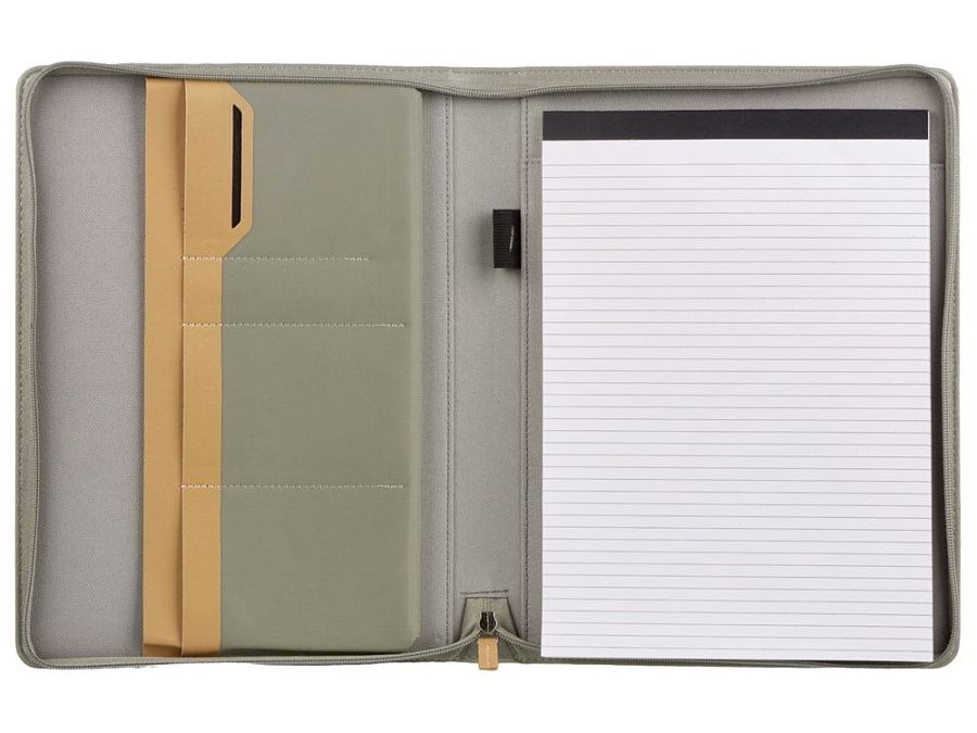 Обложка Harvey выполнена из переработанного пластика (RPET). Внутри папки 40 листов FSC бумаги плотностью 80г/м2, изготовленной с соблюдением экологических норм, на обложке - карман для визиток или бумаг.