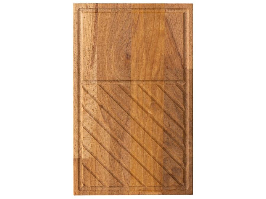 Доска подходит для разделки мяса, овощей и фруктов, бороздки по периметру изделия отводят сок и не дают ему стекать на стол.