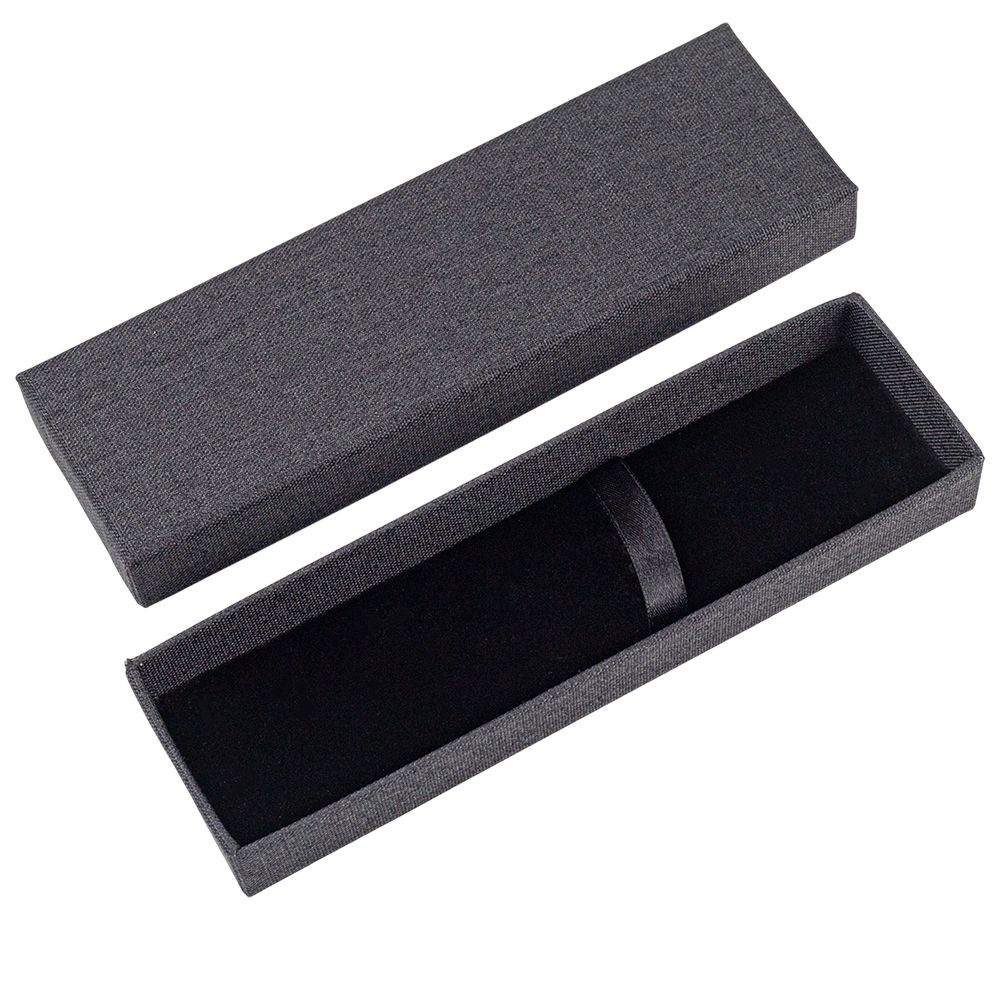 Строгий дизайн данной упаковкидополняет солидность ручки, которую вы в ней подарите. На дне ложемента находится текстильная подкладка. В роли удерживателя - широкая тесьма из мягкой ткани. Крышка плотно прилегает к основанию. Внутренний размер 160*38 мм.