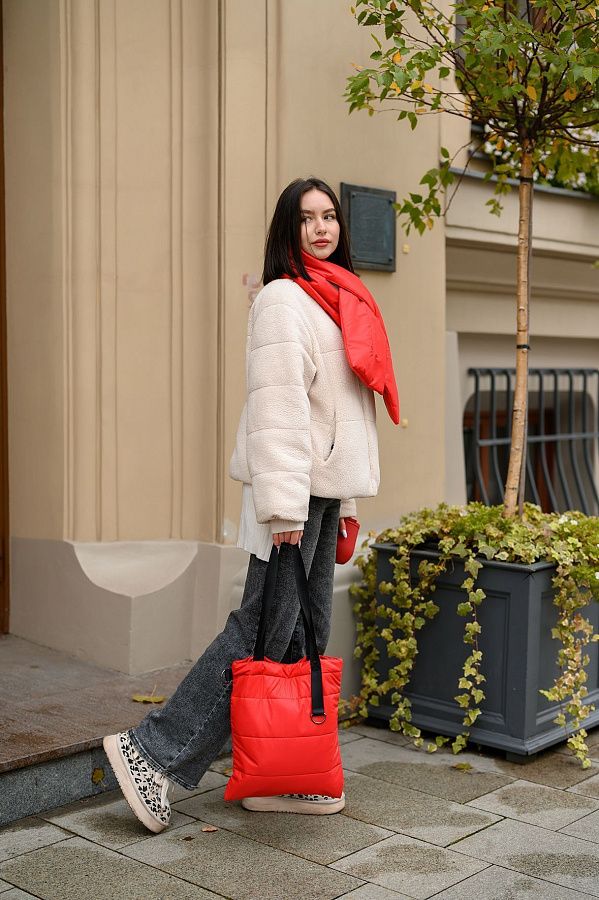 2. Шарф Bubble - отличается тем, что помимо необычной конструкции, имеет фирменную прострочку по всей длине, он объемный, благодаря синтепону и имеет ту же цветовую линейку, что и шоппер Bubble.