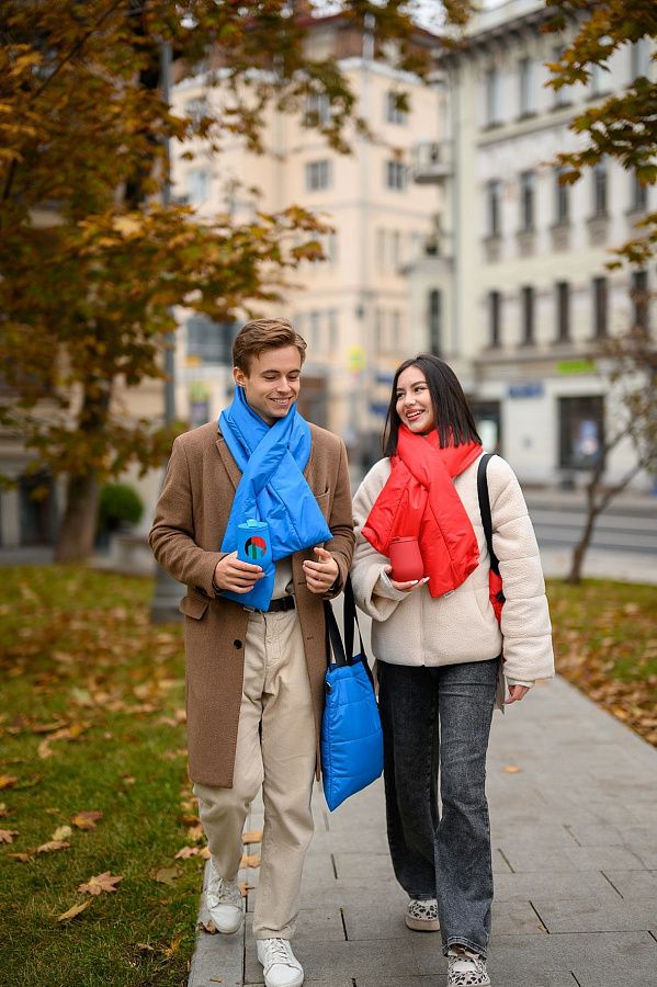 2. Шарф Bubble - отличается тем, что помимо необычной конструкции, имеет фирменную прострочку по всей длине, он объемный, благодаря синтепону и имеет ту же цветовую линейку, что и шоппер Bubble.