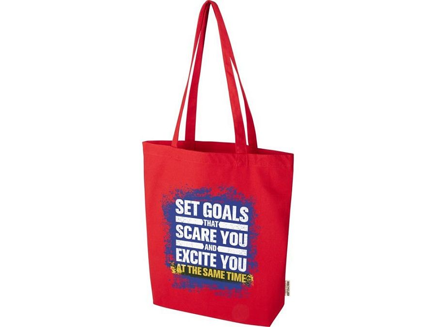Эко-сумка Florida с широким дном, изготовленная из 100% переработанного хлопка, сертифицированного согласно GRS, плотностью 270 г/м², станет более ответственным и долговечным выбором для ваших повседневных нужд. Благодаря широкому дну в нем предусмотрено дополнительное место для самых необходимых вещей на любой случай — от похода по магазинам до повседневной прогулки. Длина ручки: 30 см. Объем: 10 литр. Хлопок.