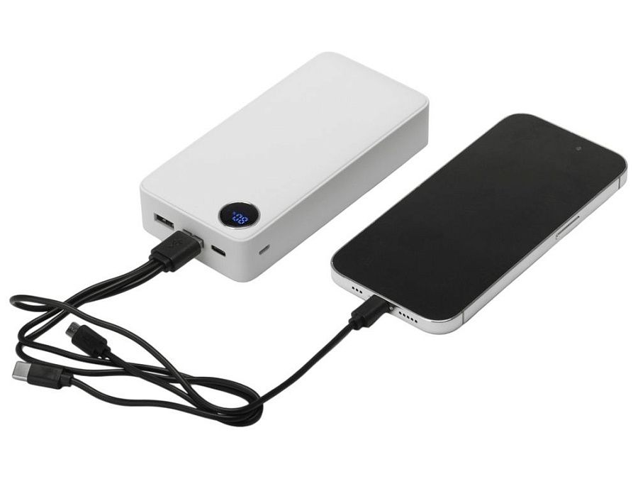 Внешний аккумулятор с новым покрытием металлик soft-touch и цифровым дисплеем. Приятное бархатистое покрытие дополнено эффектом металлического блеска. Обе стороны можно украсить полноцветным УФ изображением. Ёмкости 20000 мАч хватает для зарядки смартфона, планшета, наушников и других гаджетов на всю неделю и больше. Поддержка быстрой зарядки устройств и 3 выходных порта подойдет современному человеку, так как никто не любит ждать. На фронтальной части расположен цифровой дисплей, показывающий текущий заряд аккумулятора в процентах. Функция быстрой зарядки будет отображаться на дисплее зелеными буквами PD (Power Delivery). При первом включении дисплей может "отставать" от реального заряда аккумулятора, но после первого же цикла разрядки-зарядки повербанка он настроится автоматически. Имеется 3 выходных разъема (USB-A * 2, USB-C) и 2 входных (USB-C, micro USB). Кабель с поддержкой быстрой зарядки (USB-C - USB-C) и универсальный кабель 3-в-1 в комплекте (Lightning, micro USB, USB-C). Можно брать в самолёт.