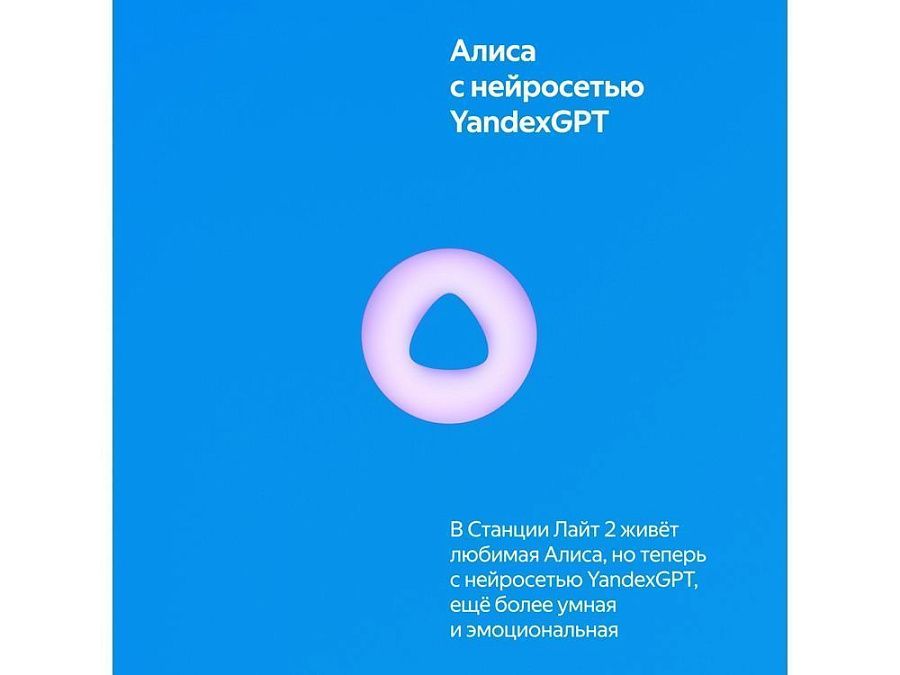 В Станции Лайт 2 живёт любимая Алиса, но теперь с нейросетью YandexGPT, ещё более умная, функциональная и эмоциональная. День за днём, детям и взрослым её компания никогда не наскучит.