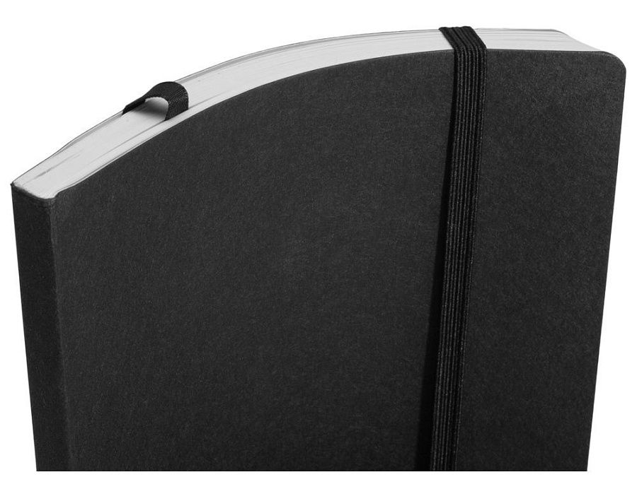 Также блокнот снабжен резинкой и петлей для ручки. Упаковка — конверт из нетканого материала с логотипом.
