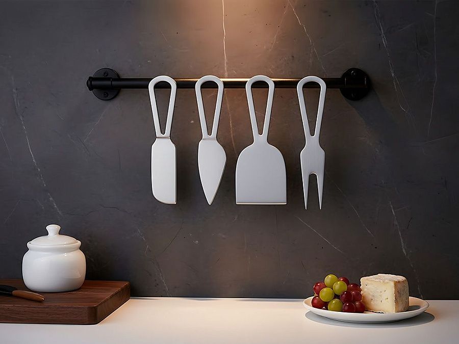 вилка для сыра 13,5 см, нож листовидный 13,3 см, нож-лопатка 13,3 см, нож-топорик 13,3 см