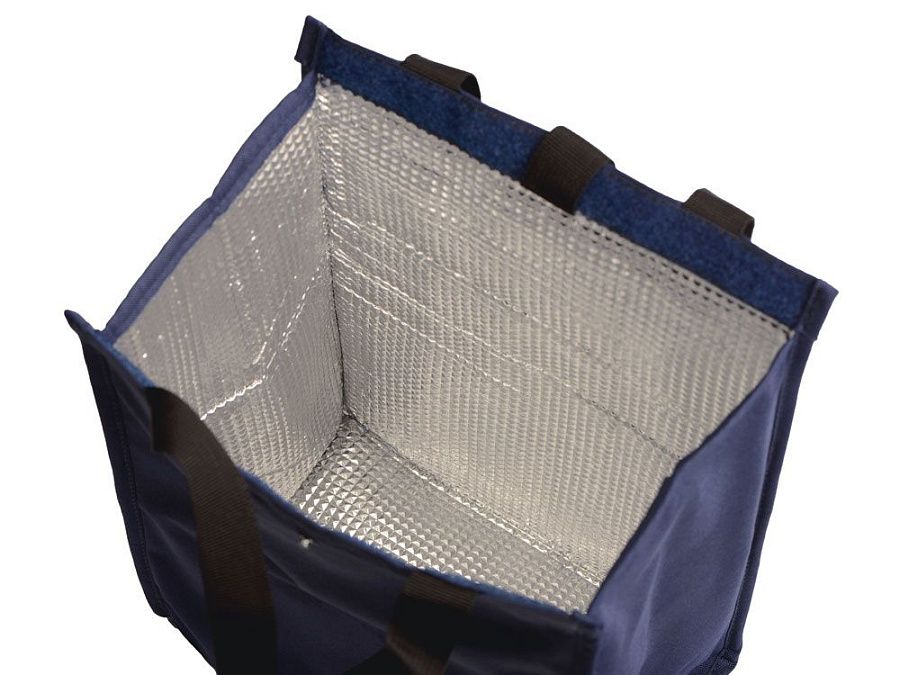 Вместительная сумка-холодильник, в том числе подходящая для винных бутылок. Внутренняя подкладка из пены толщиной 2 мм. Закрывается на плотную липучку. Складывается и застегивается на кнопку. Удобные прочные ручки для переноски.