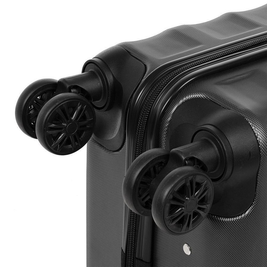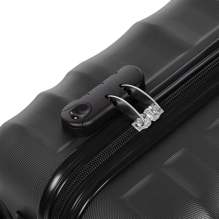 Для изготовления корпуса применяется прочный АБС-пластик последнего поколения. Специальные ребра жесткости повышают прочность конструкции и помогают нивелировать последствия удара при падении или другом механическом воздействии, а фактурная поверхность выполняет не только декоративную функцию, но и защищает чемодан от царапин.