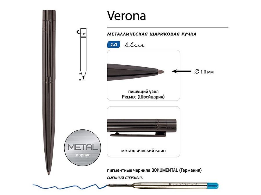 Металлическая шариковая ручка «Verona» - аксессуар, призванный стать настоящим элементом стиля, подчеркнуть индивидуальность его владельца.