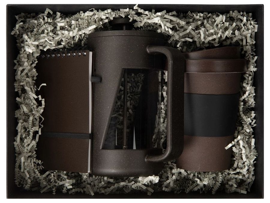 стакан, френч пресс, блокнот, наполнитель, коробка