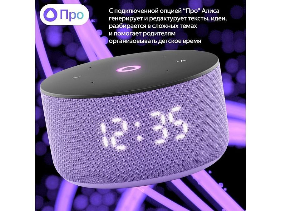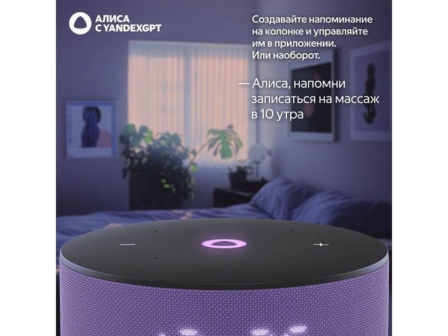 Благодаря более мягкой, цельной и гармоничной форме корпуса Станция Мини 3 отлично смотрится в любом современном интерьере. Цветовая палитра умной колонки тоже обновилась: можно выбрать классические чёрный и серый, а для ценителей акцентов подойдёт пастельный фиолетовый оттенок.