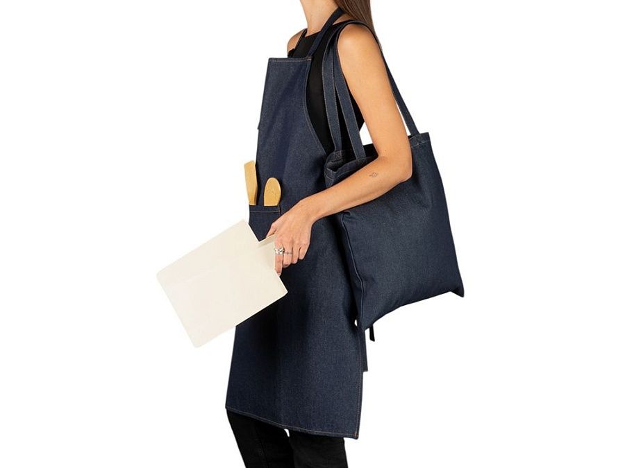 Стильные джинсовые фартук и шоппер подойдут не только женщинам, но и мужчинам; джинсовая ткань в оттенке индиго — необычное для рынка мерча и вместе с тем универсальное решение, которое органично впишется в любой кэжуал-образ. Большое поле для нанесения позволит дать волю фантазии и нанести оригинальный крупный принт.