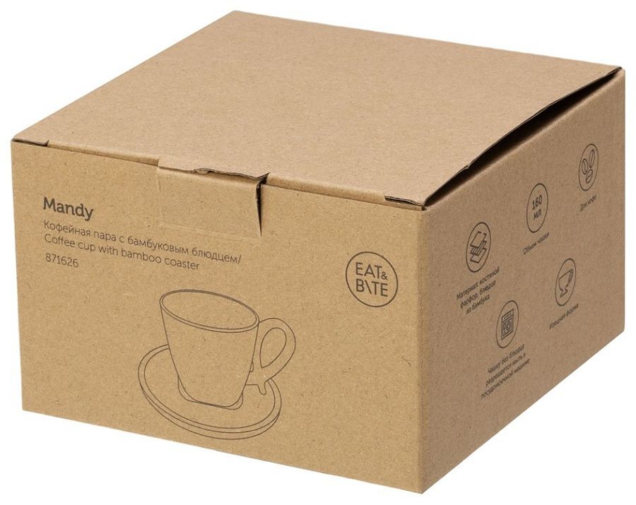 Бамбуковое блюдце имеет выемку для чашки, поэтому "Mandy" можно аккуратно разместить на столе, не занимая много места.
