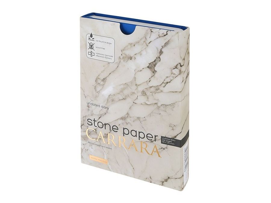 Уникальность недатированного ежедневника Carrara от Bruno Visconti — в его блоке. Он изготовлен из каменной бумаги плотностью 144 г/кв.м, отличающейся особой гладкостью и повышенной прочностью. Она не боится воды и пролитого кофе, достаточно просто протереть сухой салфеткой.