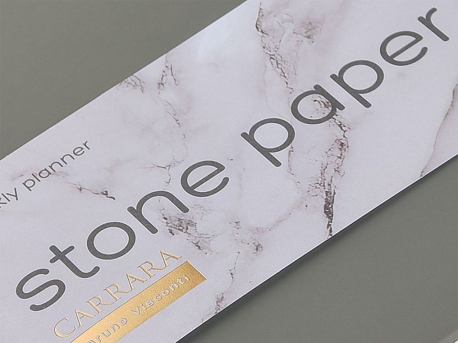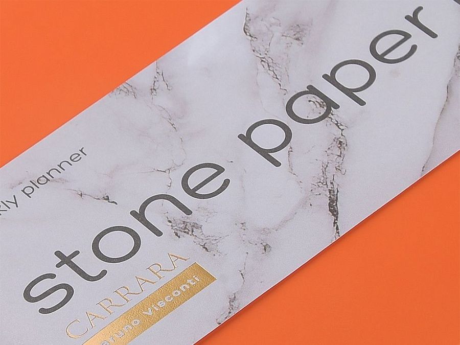 Блок произведен из каменной бумаги плотностью 144 г/кв.м, отличающейся особой гладкостью и повышенной прочностью. Она не боится воды и пролитого кофе, достаточно просто протереть сухой салфеткой.
