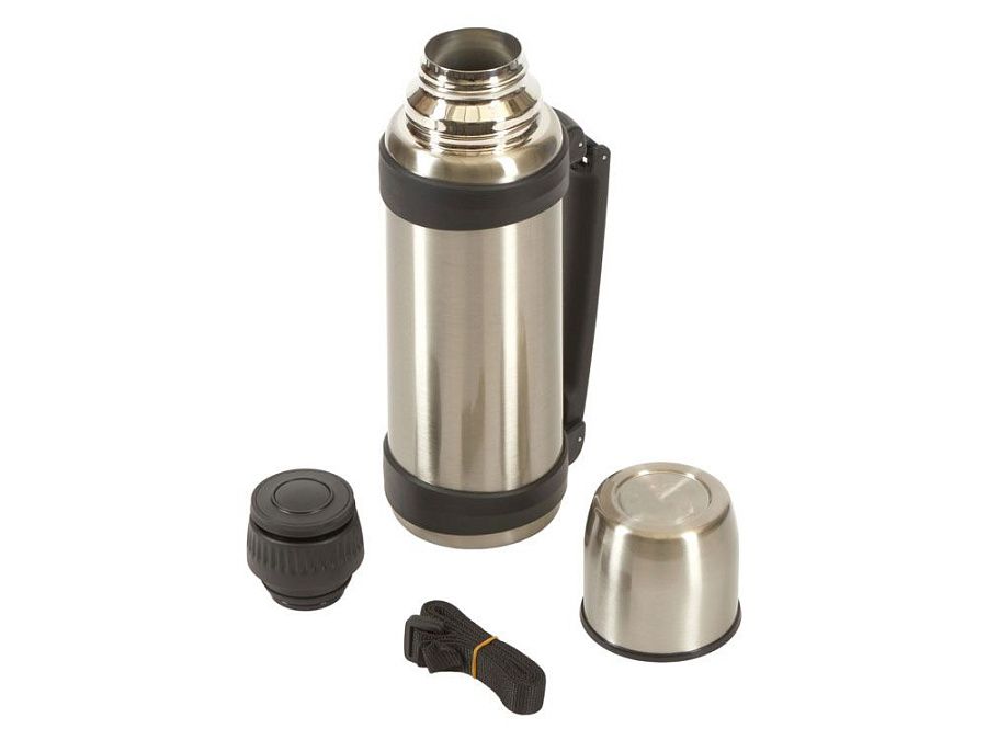 Ручка складывается для экономии места в рюкзаке. Также в комплекте идёт ремешок для удобного ношения термоса. Крышку можно использовать как чашку.