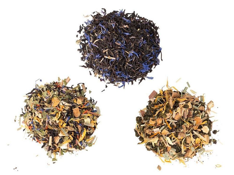 Чёрный чай в наборе относится к категории TGFOP, - помимо молодых чайных листиков он содержит нераскрывшиеся листовые почки чайного куста, которые придают чаю более мягкий и нежный вкус.