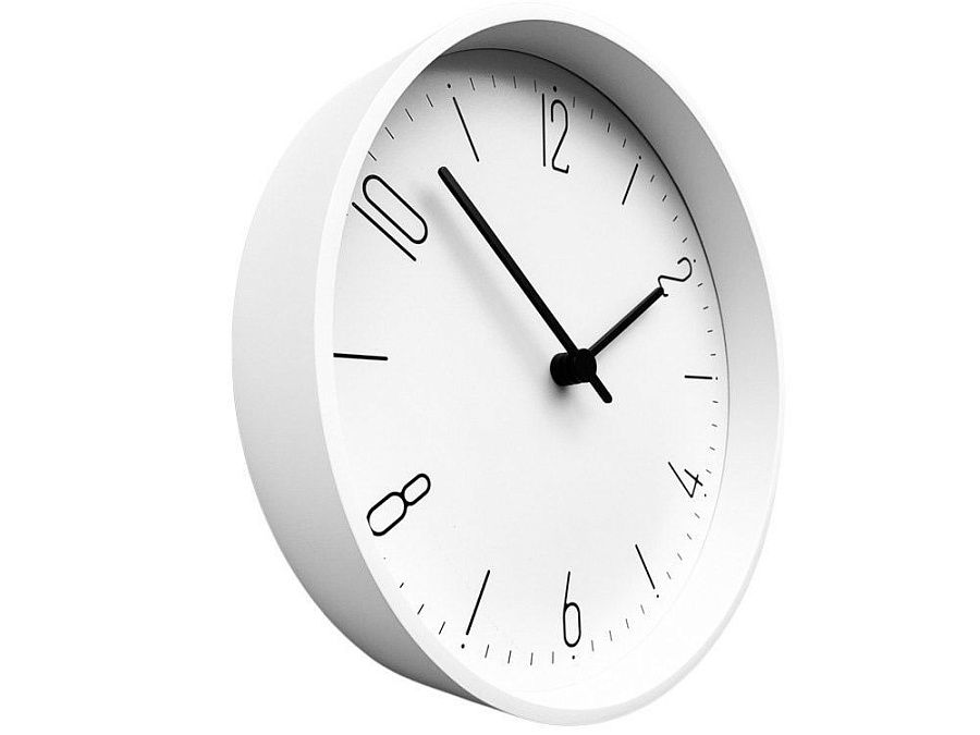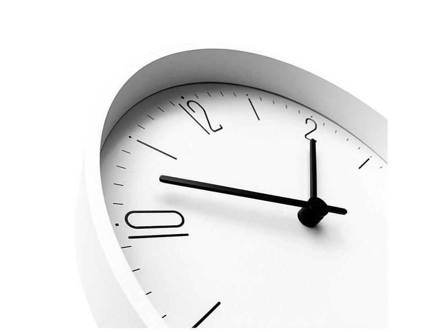 Белый обод, белый циферблат с черными цифрами - вечная классика для украшения интерьеров.