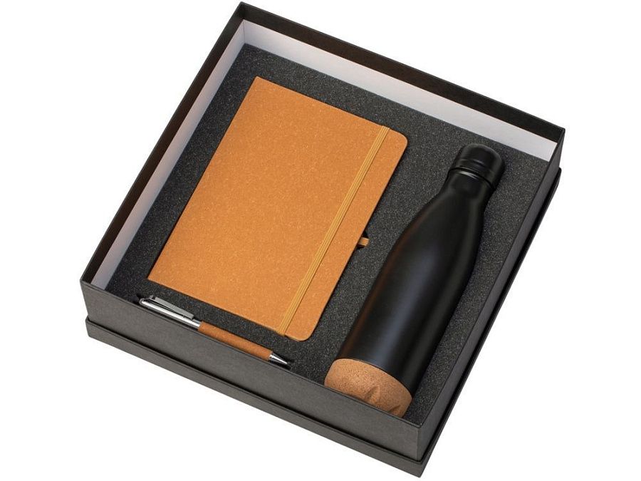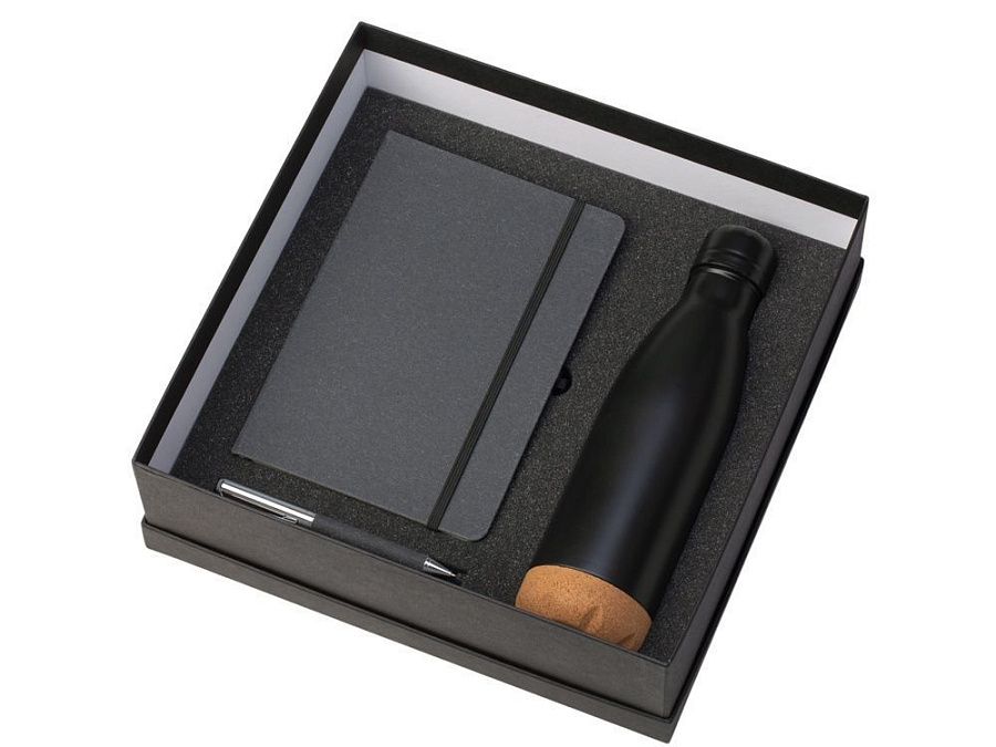Набор из блокнота, ручки и бутылки для воды - идеальный вариант для подарка сотрудникам или клиентам.