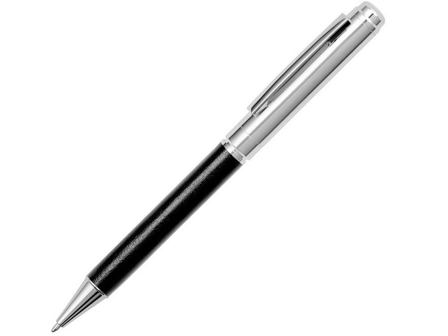 Металлическая шариковая ручка удобна в использовании благодаря вставке из полиуретана в цвет картхолдера и блокнота.